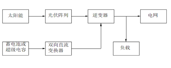 下圖是一個太陽能光伏并網(wǎng)發(fā)電系統(tǒng)示意圖,該系統(tǒng)由太陽能、光伏陣列、雙向直流變換器、蓄電池或超級電容和并網(wǎng)逆變器構(gòu)成。